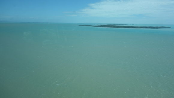 View of the Caribbean Sea and splashes of mangrove islands