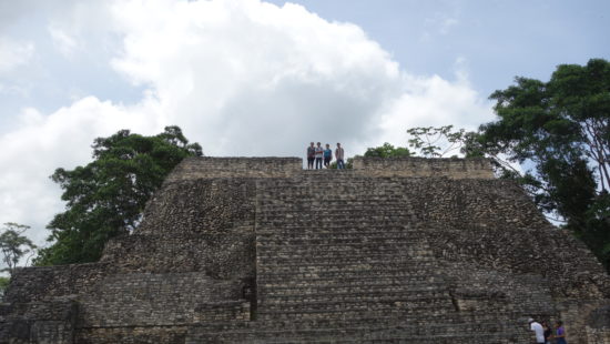 Visitors on top of Temple B18, Caracol. Belize.